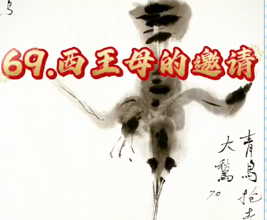 第六十九集、西王母的邀请 狐姐正想告诉球君,要带他去见西王母,突然从空中冲下一只青鸟,把她刚拾到的请柬抢走,并吞进了肚子里,飞得无影无踪了。狐姐认出它是大鹙,那刚才送信的肯定是它的妹妹少鹜了,它俩是三青鸟的姐妹。它们都是西王母的贴身...